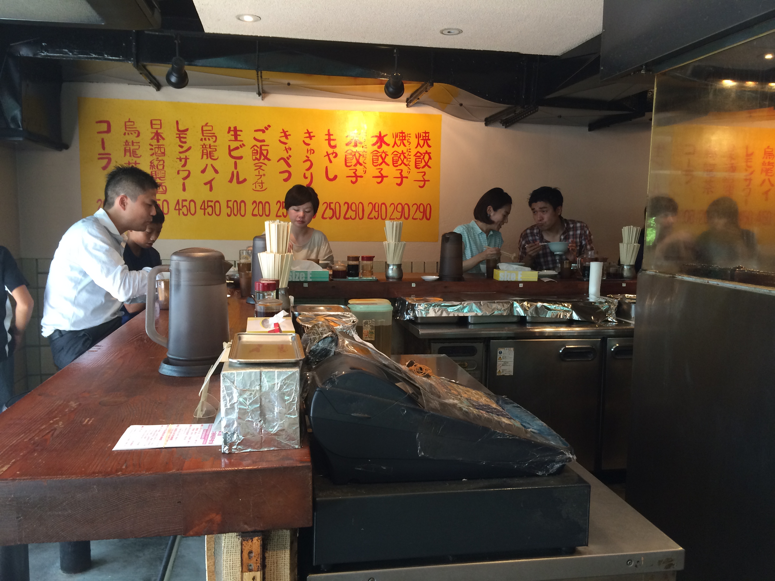 We walked down Cat Street, which is one of my favorite little areas so far. Shops line both sides of the pedestrian street, and it just has a very quaint, almost smalltown feel to it. For lunch we stopped into Gyoza Lou and ate at the bar. The menu is extremely simple…steamed or fried, with onions and garlic or plain/original…but it works!! They also have some side dishes – bean sprouts with some kind of delicious meat sauce, cabbage with vinegar, cucumbers with miso. It was all delicious and a great way to kick off what I know will be 2 weeks packed full of great eats.