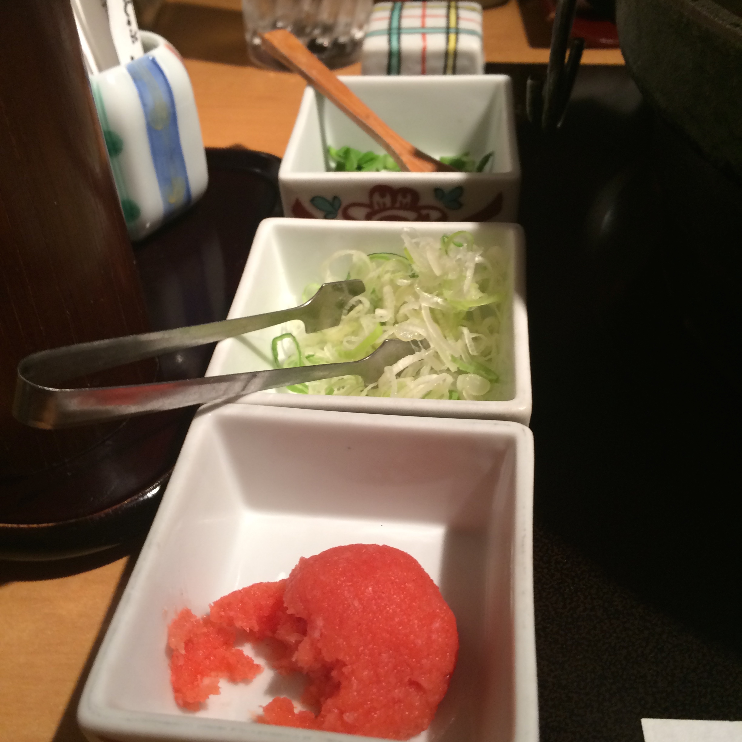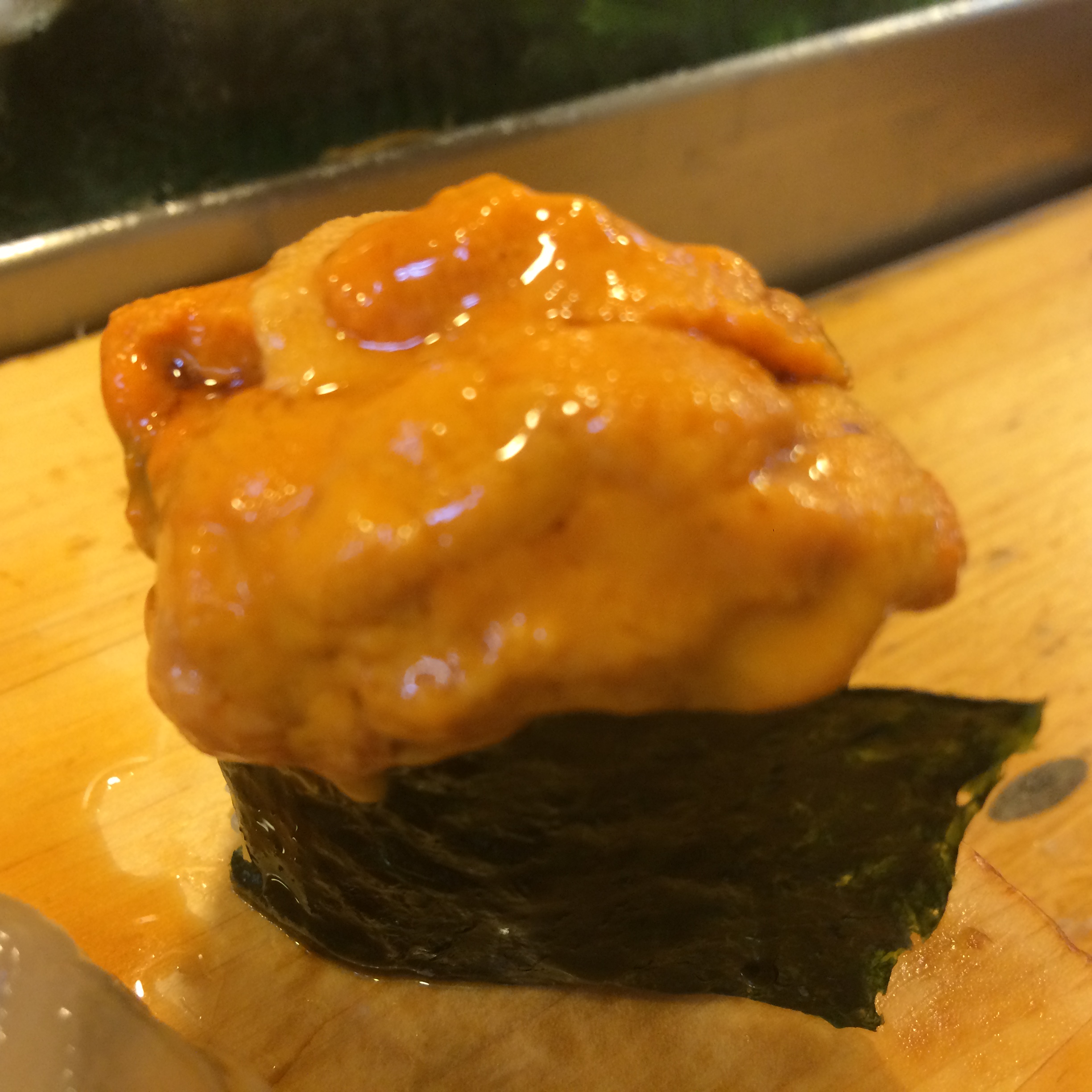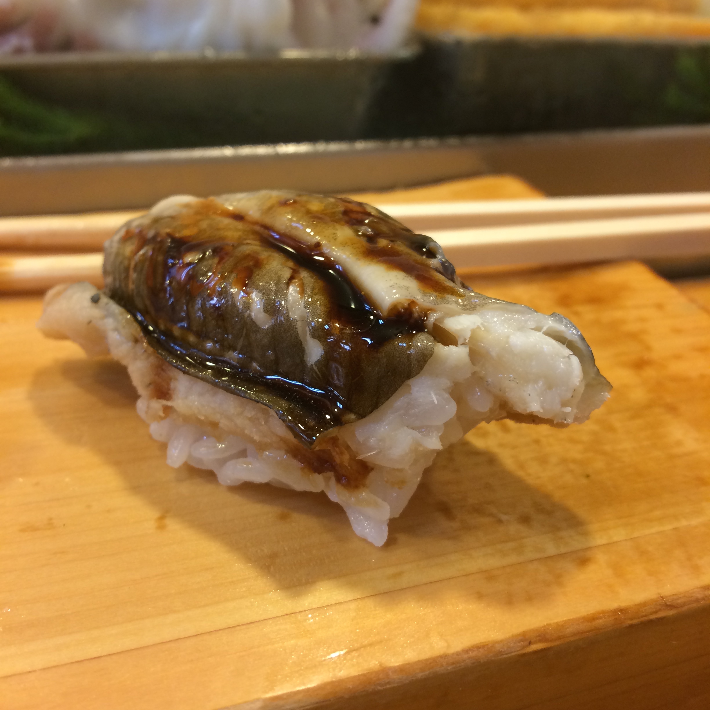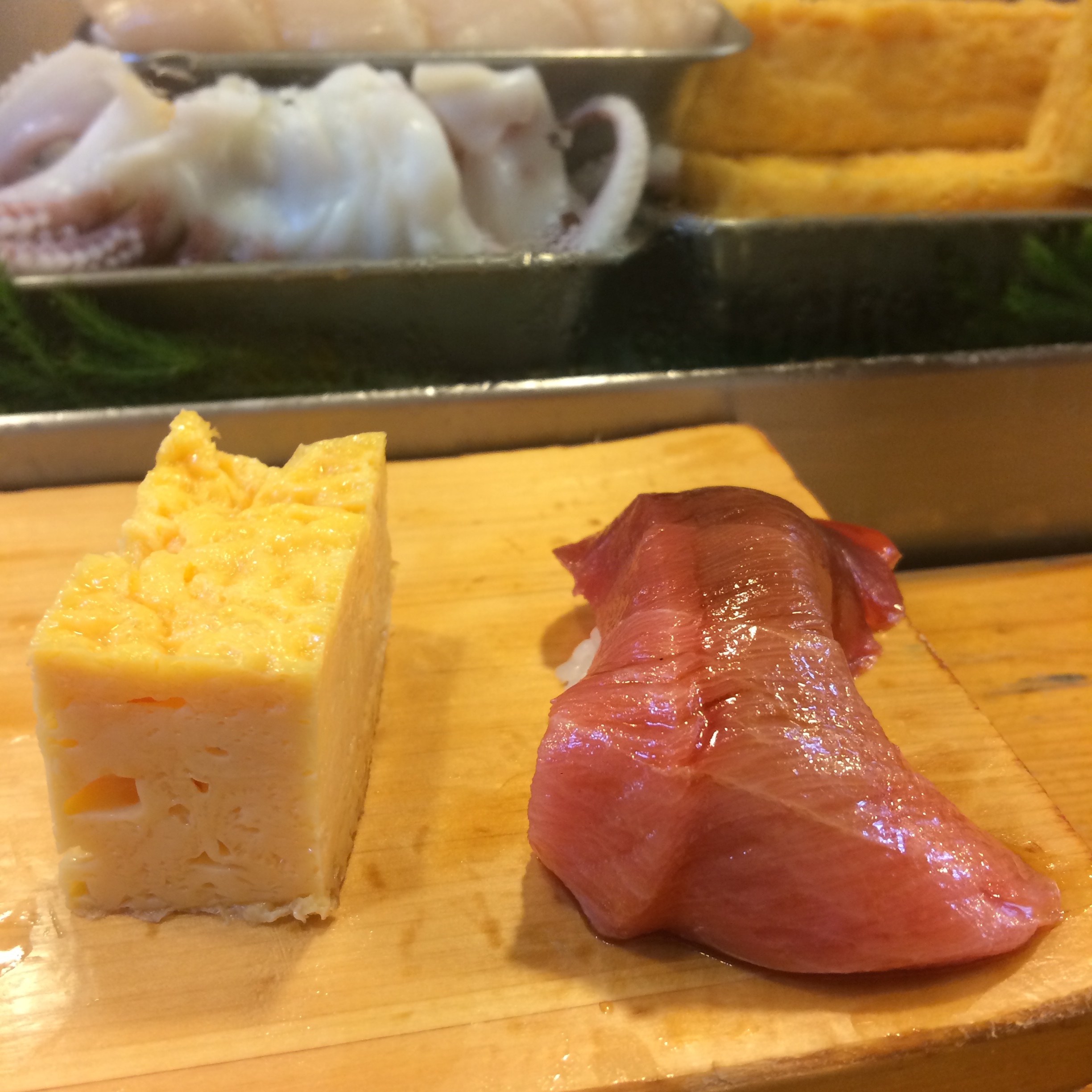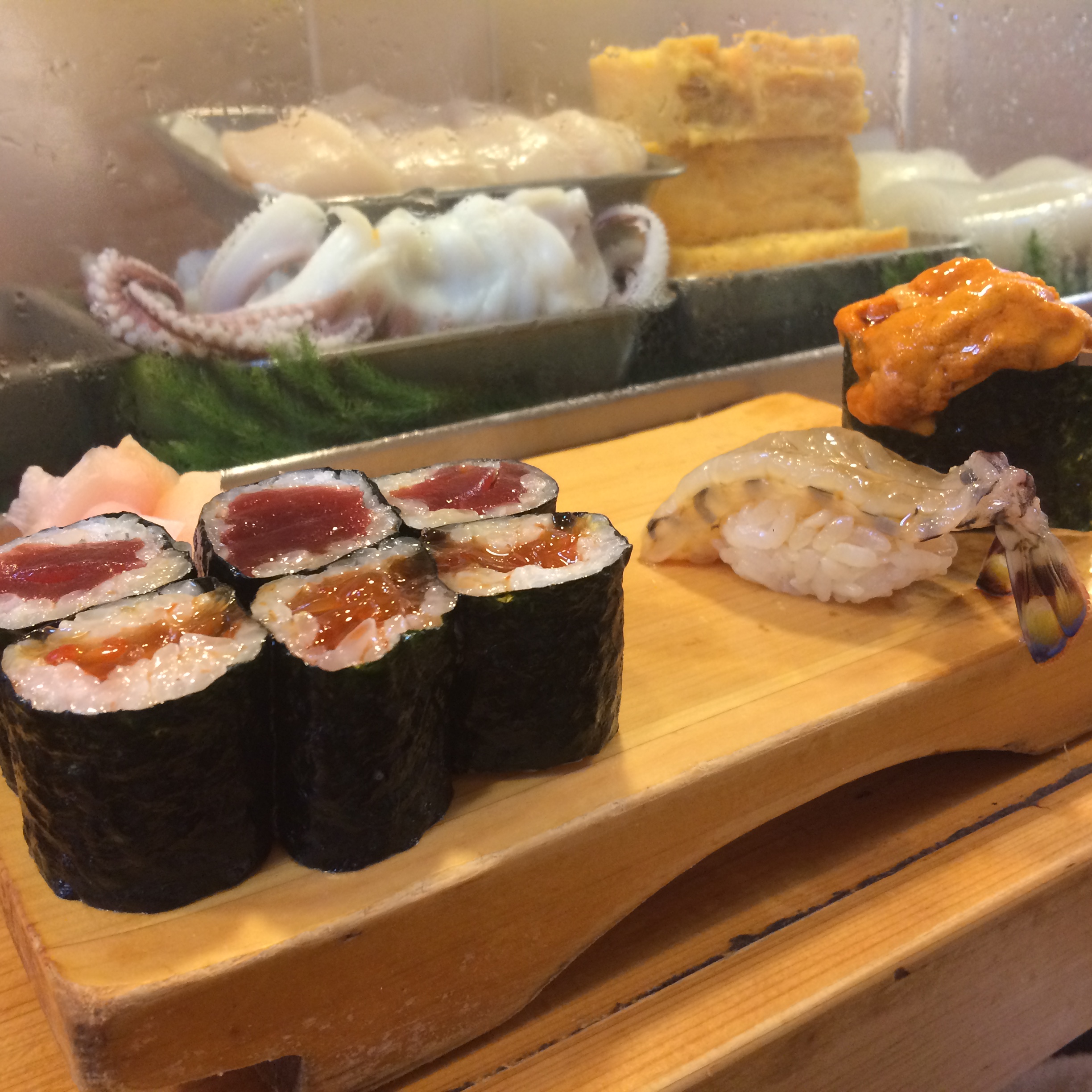 The next sushi meal was lunch at Kanesaka, a 2-star Michelin rated restaurant. Sushi “lunch sets” in Tokyo are a great way to experience an amazing place at a fraction of the price. No photographs allowed at this 16-or-so seater, but I’ll briefly talk about the meal: Started with snapper, followed by amazing yellowtail, then a great piece of tuna brushed with a little bit of a sauce. Fatty tuna (toro) came next and literally melted in my mouth…fantastic!! Squid served with wasabi, but without sauce (which was unlike the other places I had been this trip). Mackerel came next – honestly my least favorite in the typical Japanese sushi lineup, but still very good here. An amazing piece of bonito with scallions was next, followed by a scored scallop with wasabi and a light sauce. White shrimp, followed by some sort of pickled vegetable roll, and tamago and anago (sea eel) to finish it off. This was great sushi, but a little more straight down to business than our experience at Iwa, which was a little lighter/more fun/more social. This wasn’t my personal favorite of all the sushi I’ve had this trip, but it was a really good meal with great fish which is obviously key…I’m just lucky enough to be picking favorites among champions here.
