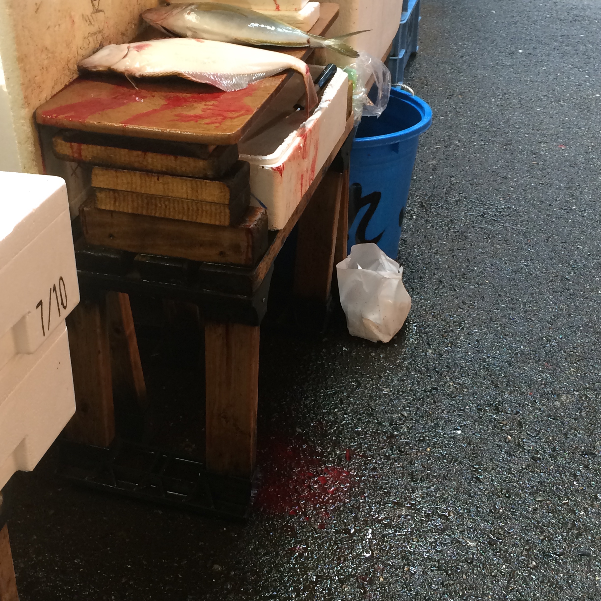 We walked around the fish portion of the market and got to see this vibrant, active market at work, just before closing down for the day. There are men on different vehicles zipping every which way, and if you don’t keep your eyes open you will most definitely get hit…they are not stopping for you! We saw every kind of creature from the sea, and then some, being sold. There were fish heads here, chum there, a fish being gutted over there somewhere, not a moment without visual stimulation!