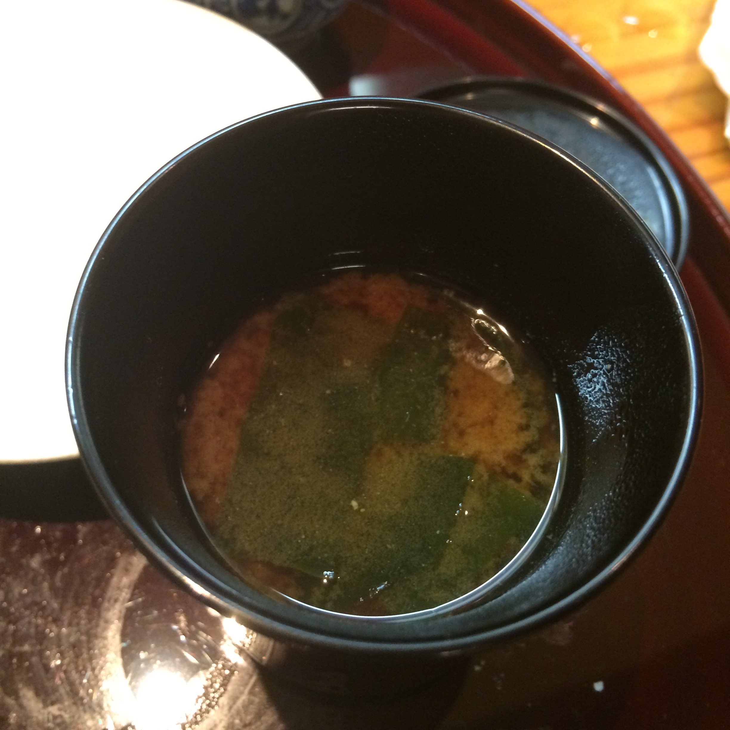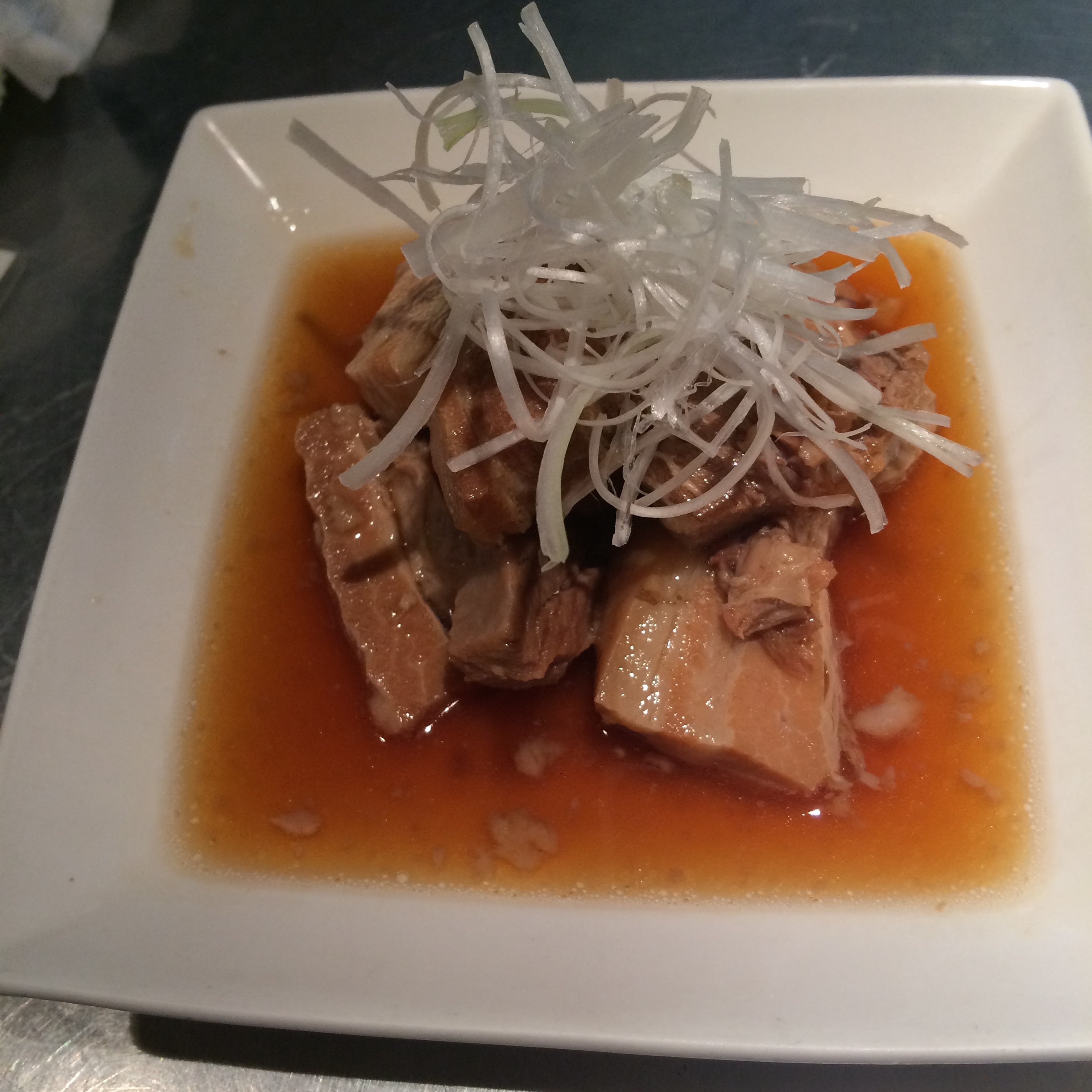 That somewhere else was Tonki. My brother had been talking about wanting to try this place, but mentioned that you have to line up at like 3:30pm for dinner. Seeing as that sounded crazy, we kept pushing this off. We were free one night though and decided to just go check on how bad the line was at 6:30pm on a Saturday. Luckily, we only waited about 30-40 minutes, which was only a problem because of the lack of a/c. Tonki is a family-run operation, and the experience of it all is the biggest reason to go there. Dinner is served in the round, with a 3 sided counter enveloping the open kitchen. While in line you shout your order to the man keeping track of the line from the kitchen. There are only two menu options – a cutlet either with a little fat or one with more fat – we opted for 1 of each between the 2 of us. You can watch the tonkatsu as it progresses down it’s assembly line – from the batter station, to the fryer, to the old grandpa who cuts each cutlet perfectly and then hands it off to the plating station, where the mound of lettuce already sits on the plate waiting for the pork to accompany it, and a dollop of spicy mustard is waiting to be added. Tonki makes their cutlets a little differently than everyone else – they keep them in the fryer for a long time so that the coating is almost separated from the pork – it’s crunchier than the rest. There is less emphasis on sauce here, having only 1 option other than the mustard. These plates are also served with the pickles, white rice, and miso soup, only this miso soup is like no other I’ve ever had…naturally, it is made with pork in it. Rich and delicious, this was AMAZING!! I would go to Tonki, like I said, mostly for the experience, but also for this soup. Don’t get me wrong, the cutlet was delicious (we preferred the one with less fat, by the way) but the miso was unforgettable.