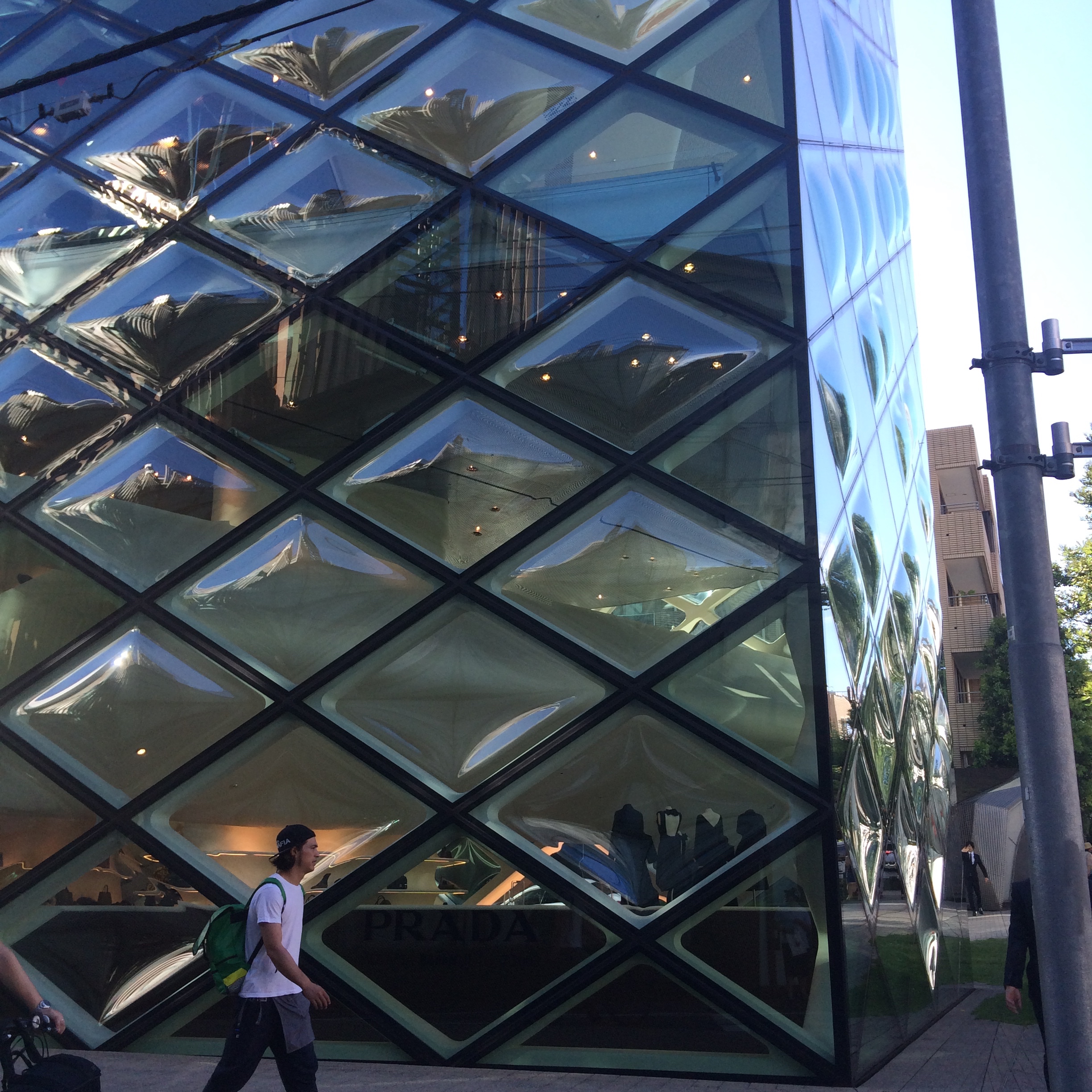 We walked past the Prada store that I had been reading so much about as far as the building it’s housed in. I could feel the A/C from outside so demanded a quick stop in, which I quickly realized was a mistake because here we were sweaty and disheveled from the weather and we thought we should walk into the perfectly manicured Prada store?!