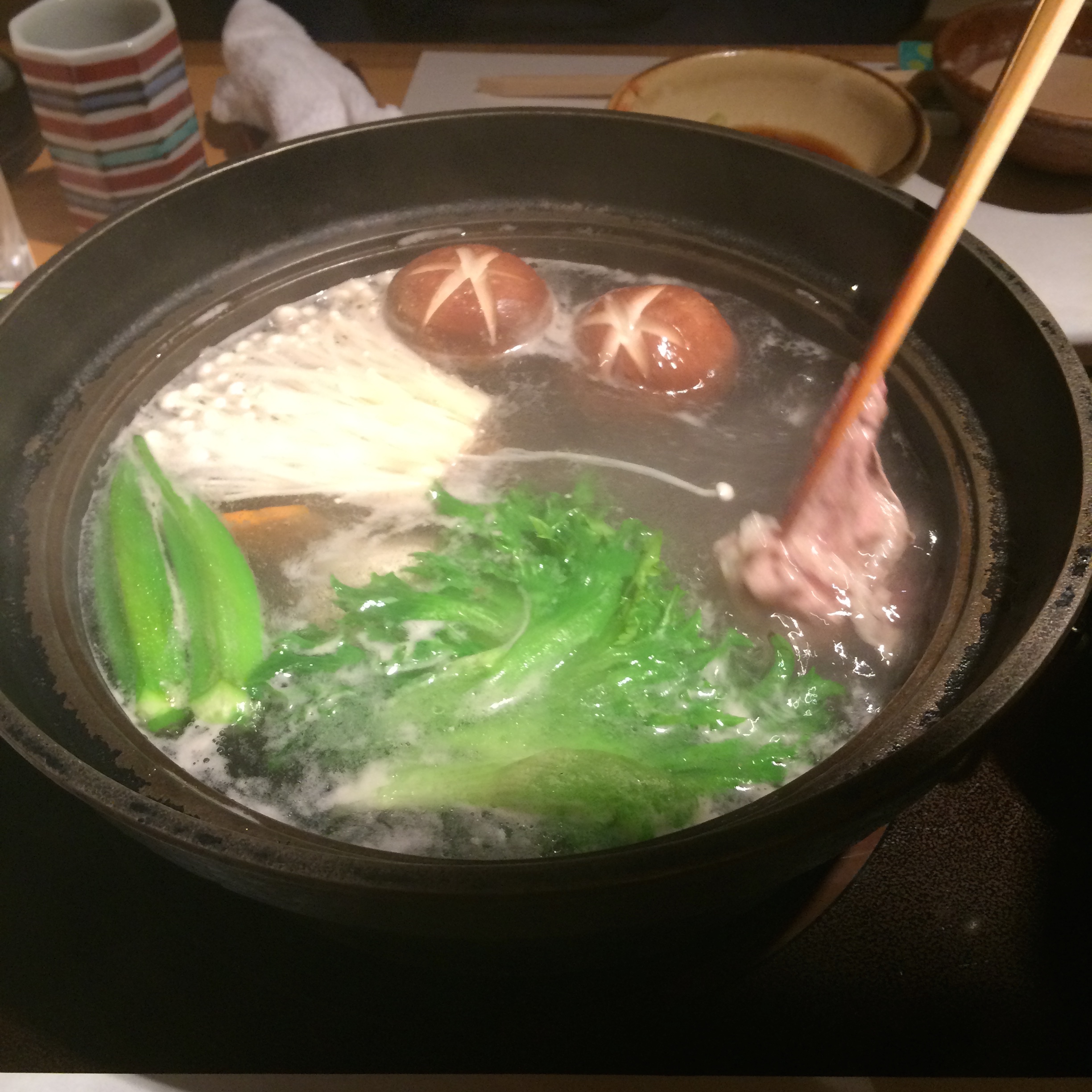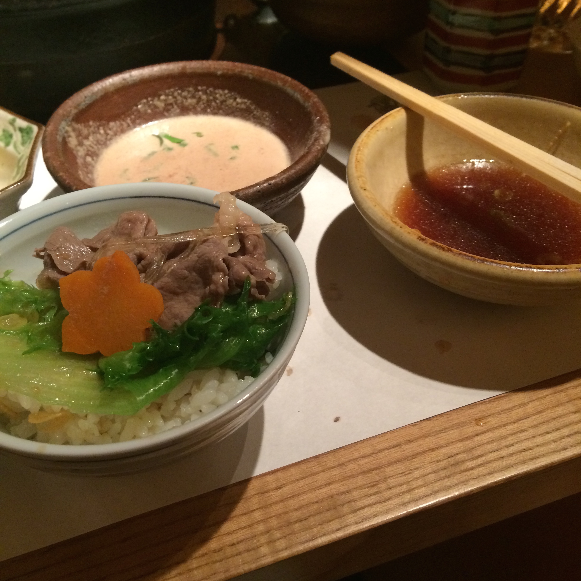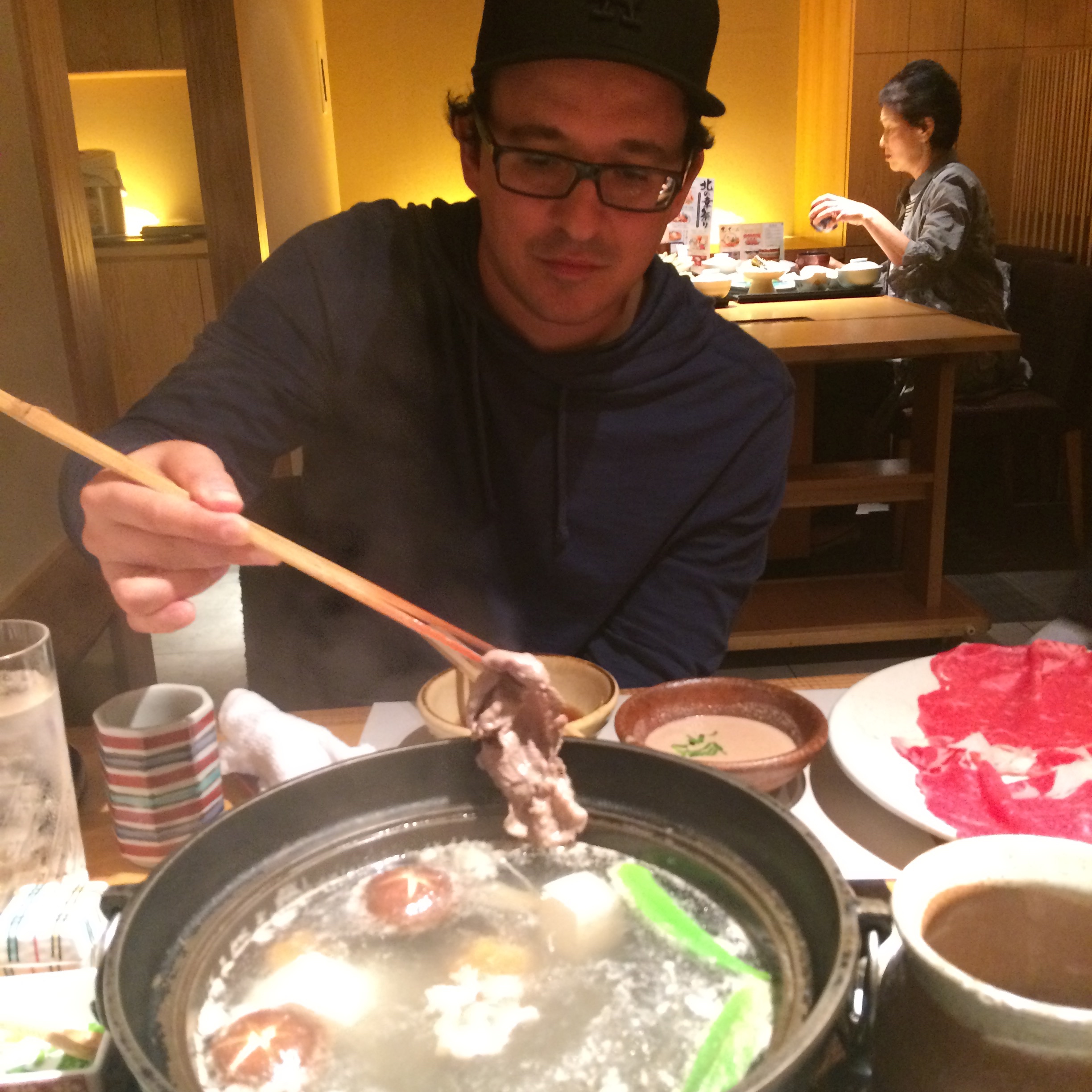 After such a hard day physically we needed to take it down just a notch. So, we relaxed all morning and then went out in time for lunch. I had read about Kisoji, a Wagyu Shabu Shabu place in Shinjuku, the area where most of our day was going to take place, so we decided to go there. The restaurant was up on the 5th floor, my first meal above ground here, and as you can see since the name of the restaurant is obviously not in English we just had to look through the signs and pictures to figure out exactly where in this general vicinity the restaurant was…they don’t really use addresses here.