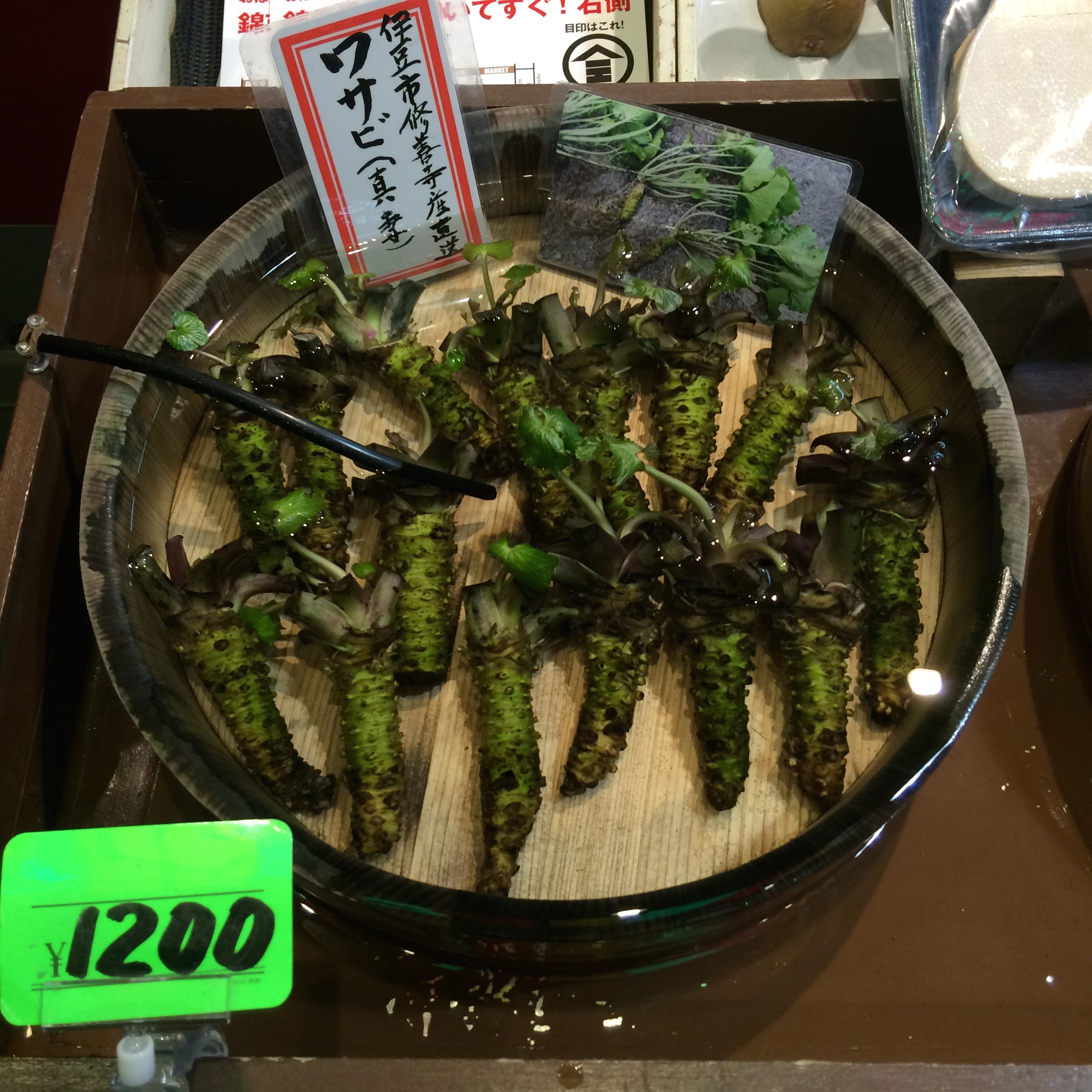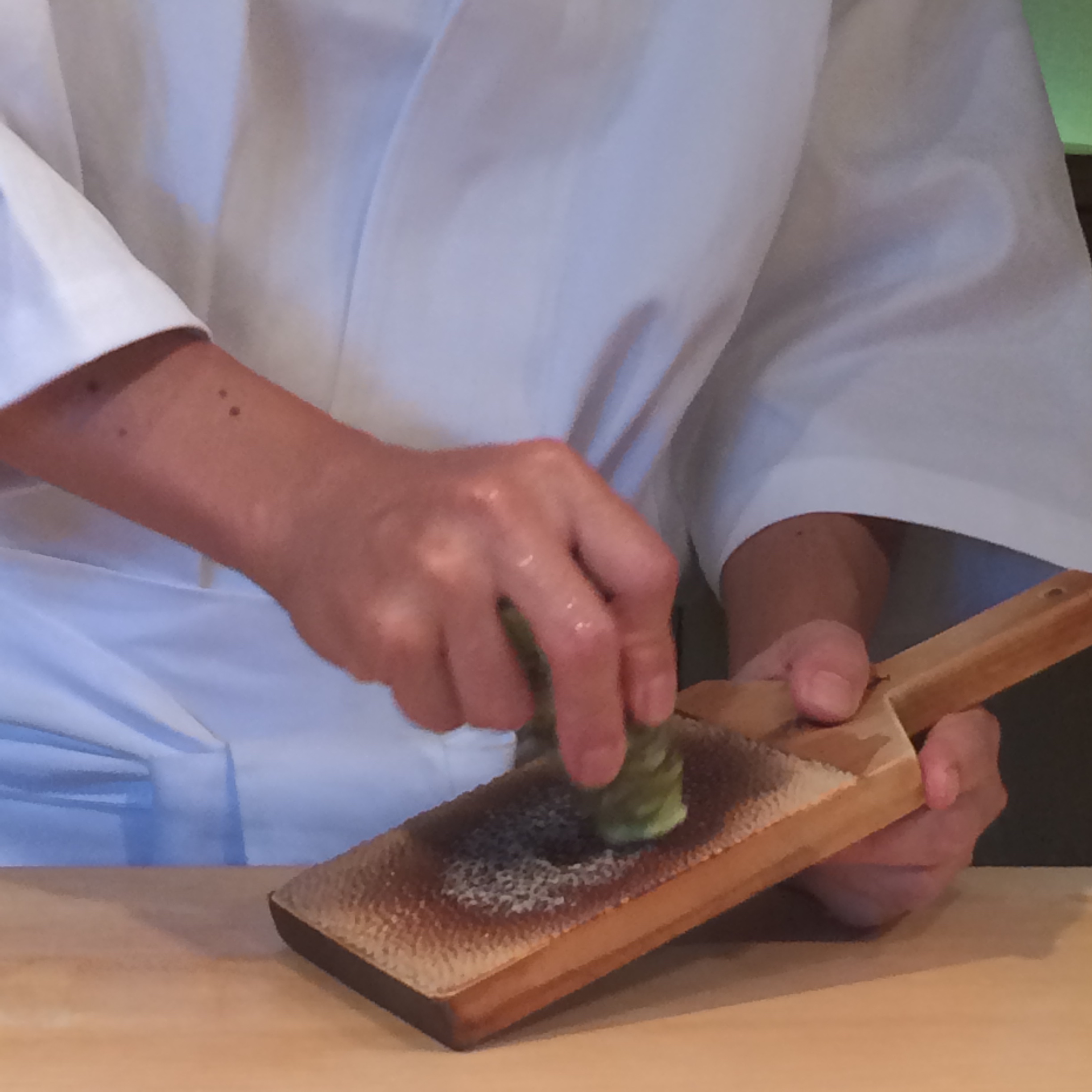 Real Wasabi two ways. Root form, and freshly grated (in a circular motion on a special shark-skin covered board.