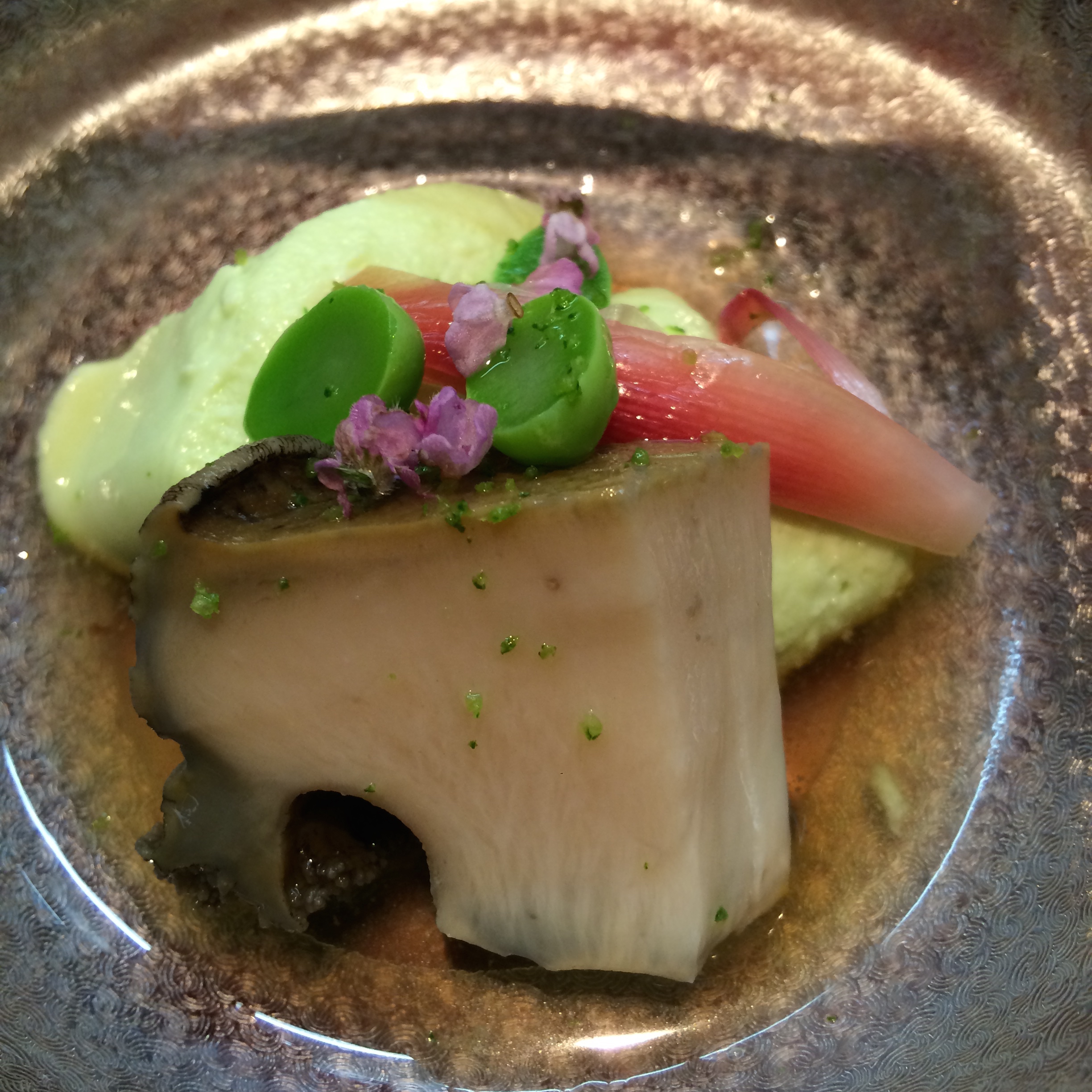 First up was Abalone with an edamame custard, actual edamame and a pickled onion. I don’t think I had ever had abalone before this, glad to add it to the list.