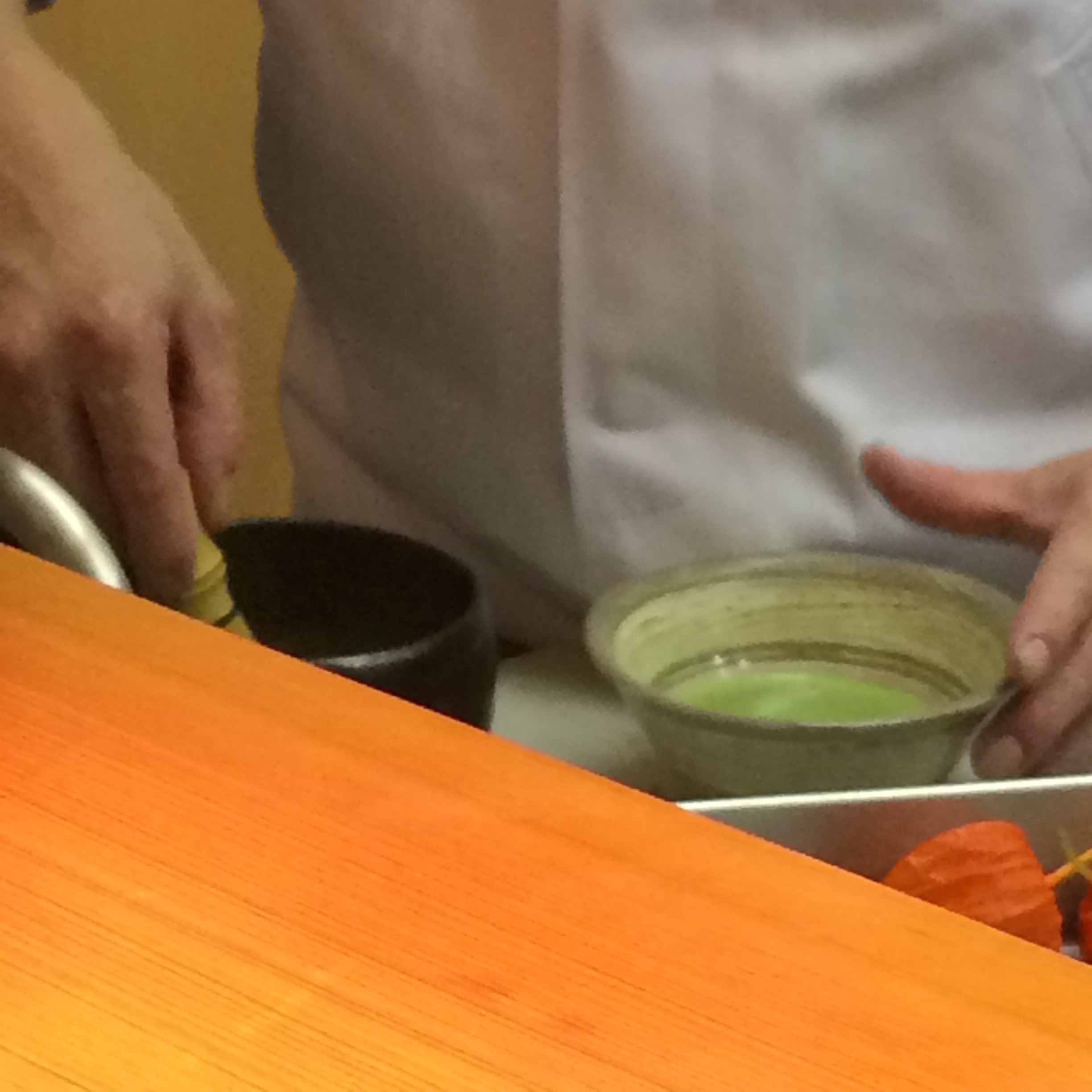 The meal came to a close with traditional Matcha Green Tea. Chef whisked this high-grade green-tea powder for a few minutes to create this bowl of tea. Like so many things here, it is all part of the ritual and tradition. Look at that deep green color!