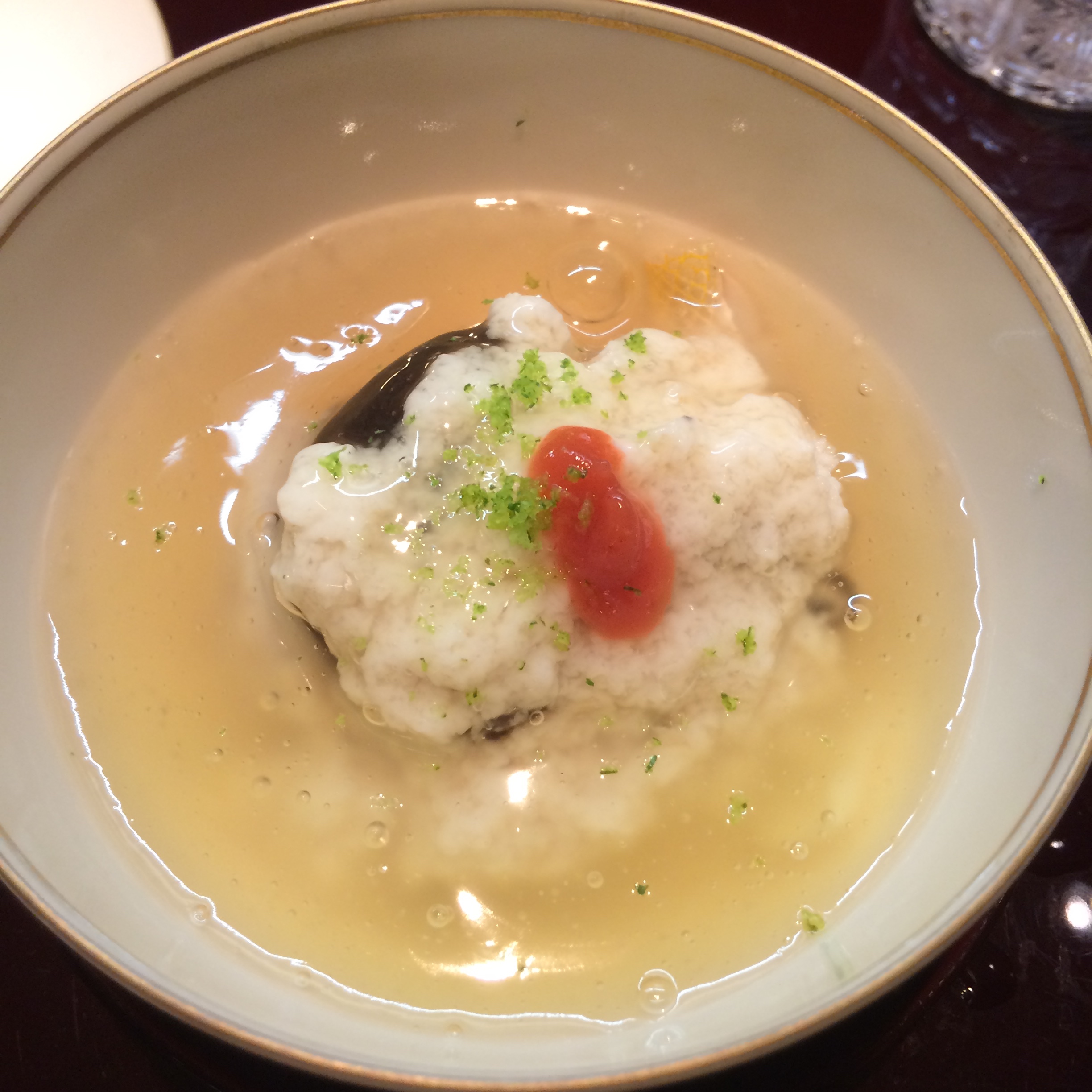 The last soup dish was one of sea bream, lotus root and chestnuts. I loved the chestnuts hidden at the bottom and the flavor of the lotus root in this almost porridge-like soup.