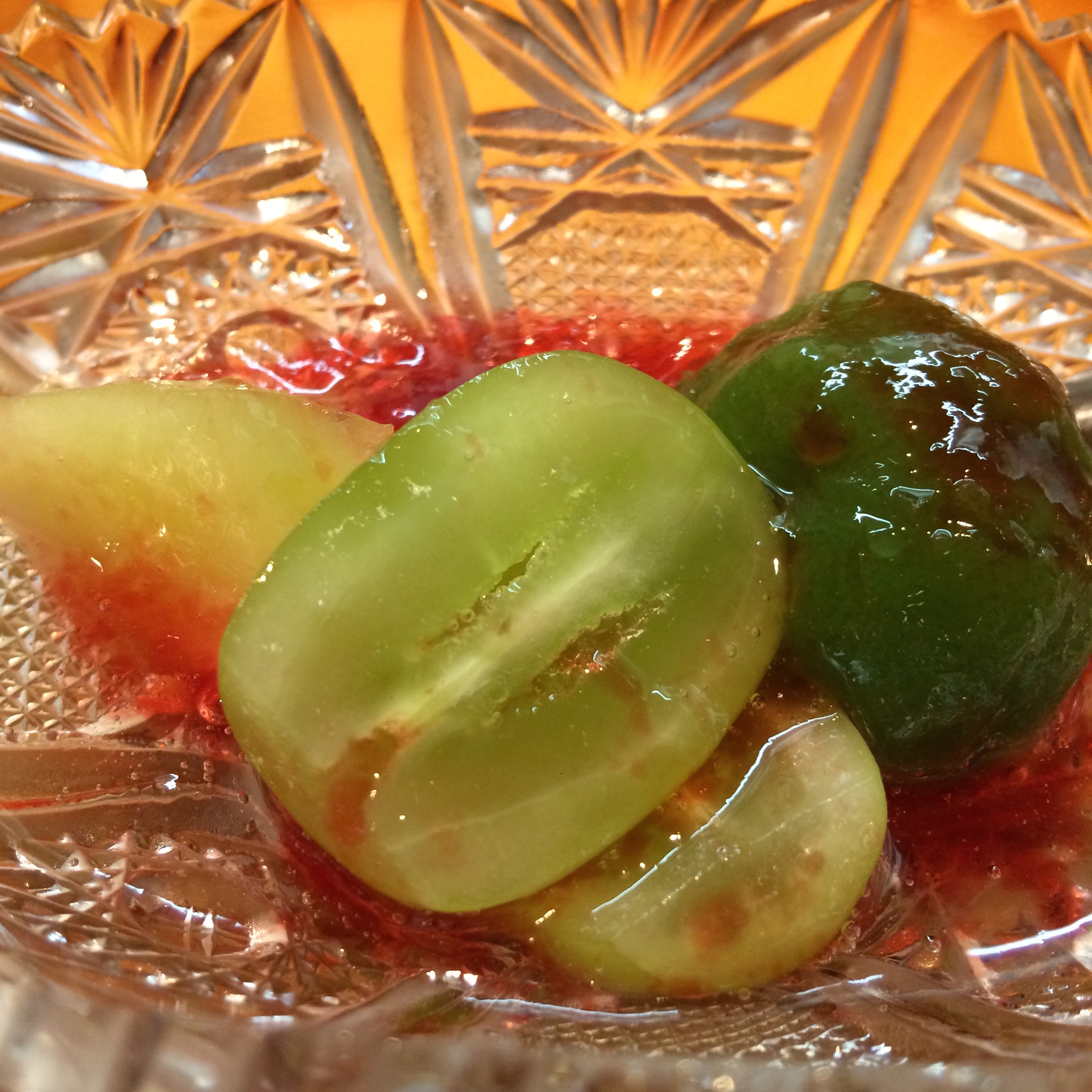 Dessert began with fruit: Japanese apricot, a green grape and melon in wine jelly. The Japanese take their fruit very seriously, so these small selections were fantastically flavorful.