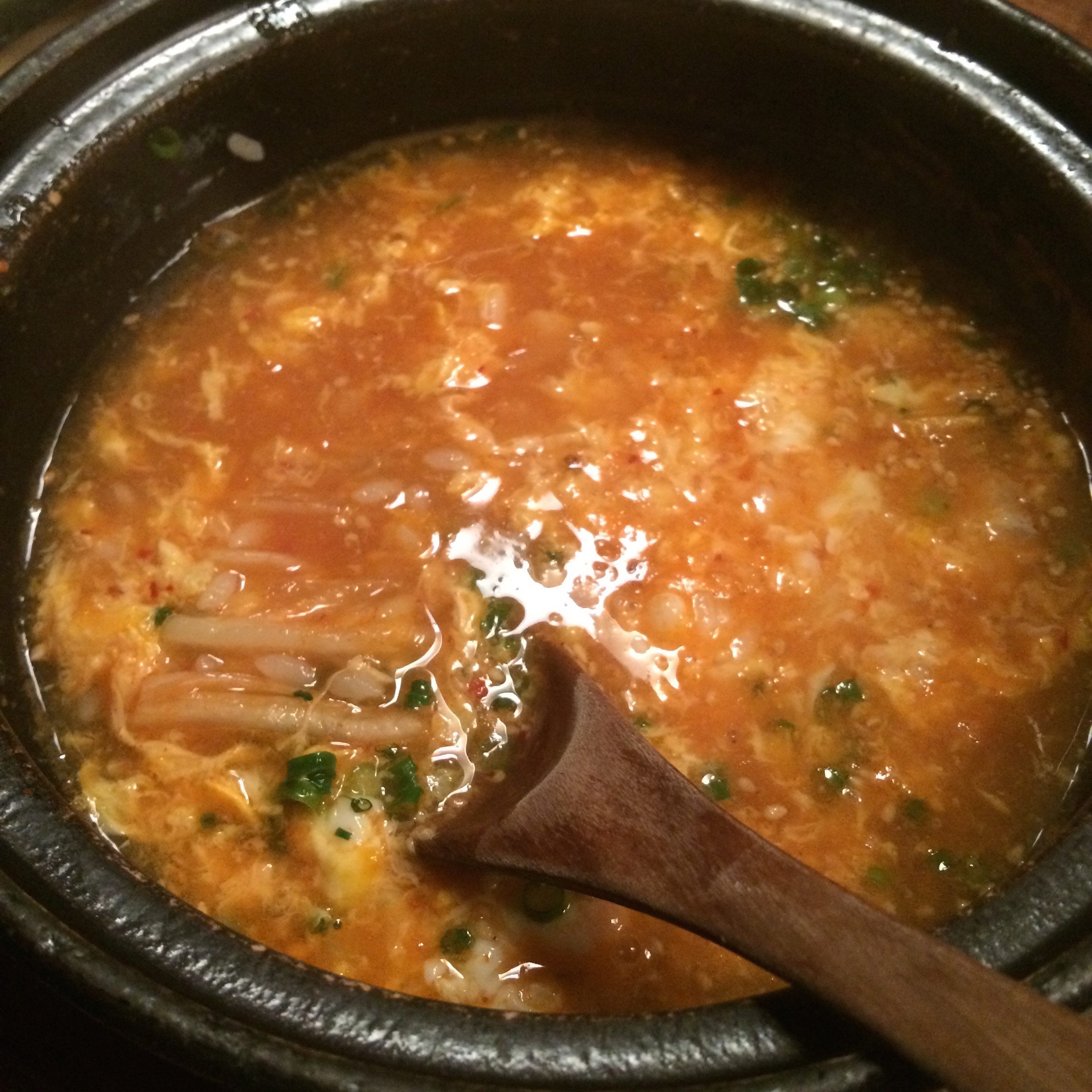 The market isn’t the only place where we had great food in Kyoto. At a little yakitori place called Torito we had great chicken meatball skewers with an egg, and a very tasty stew of kimchee and rice.