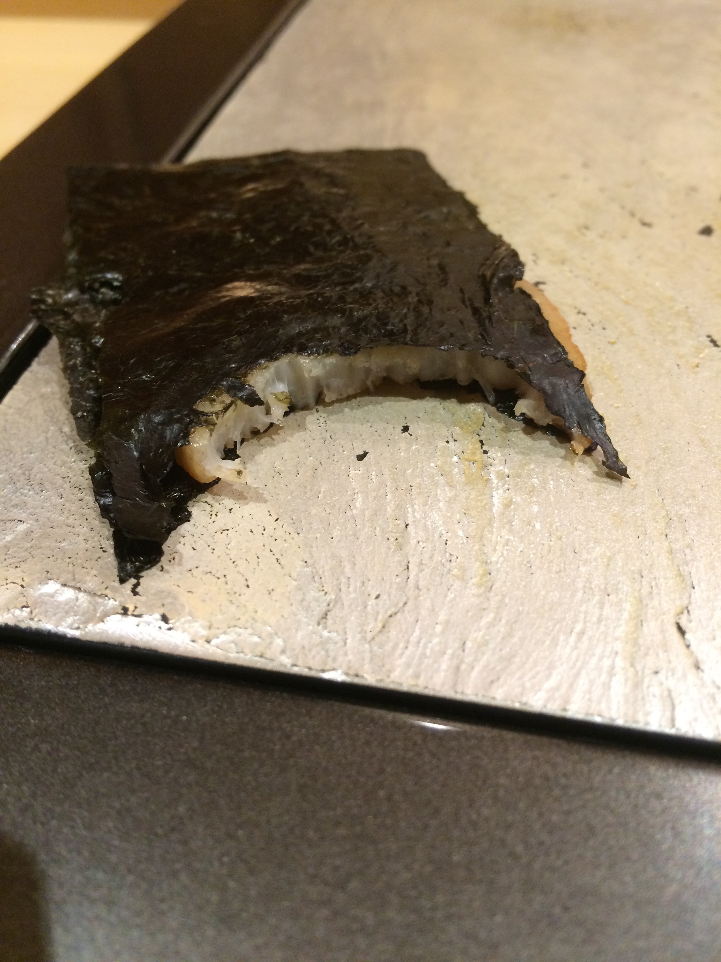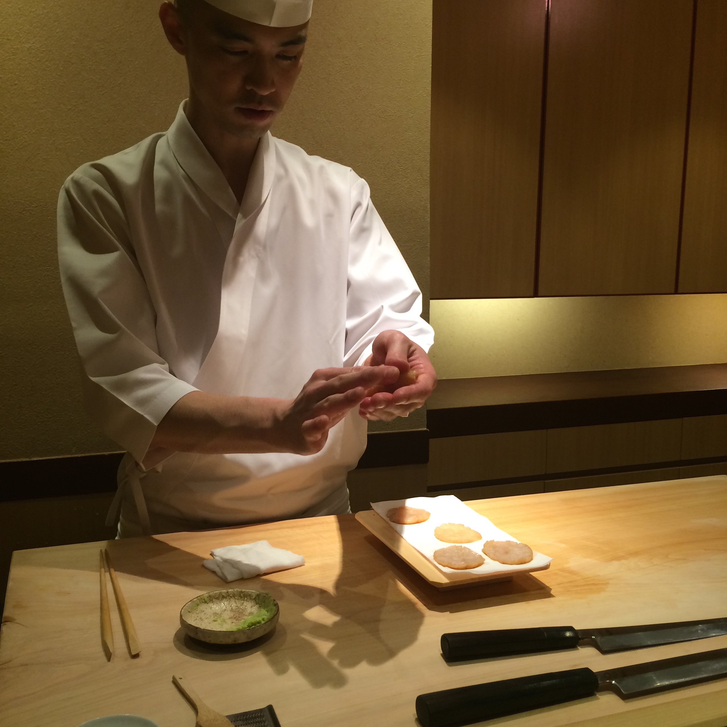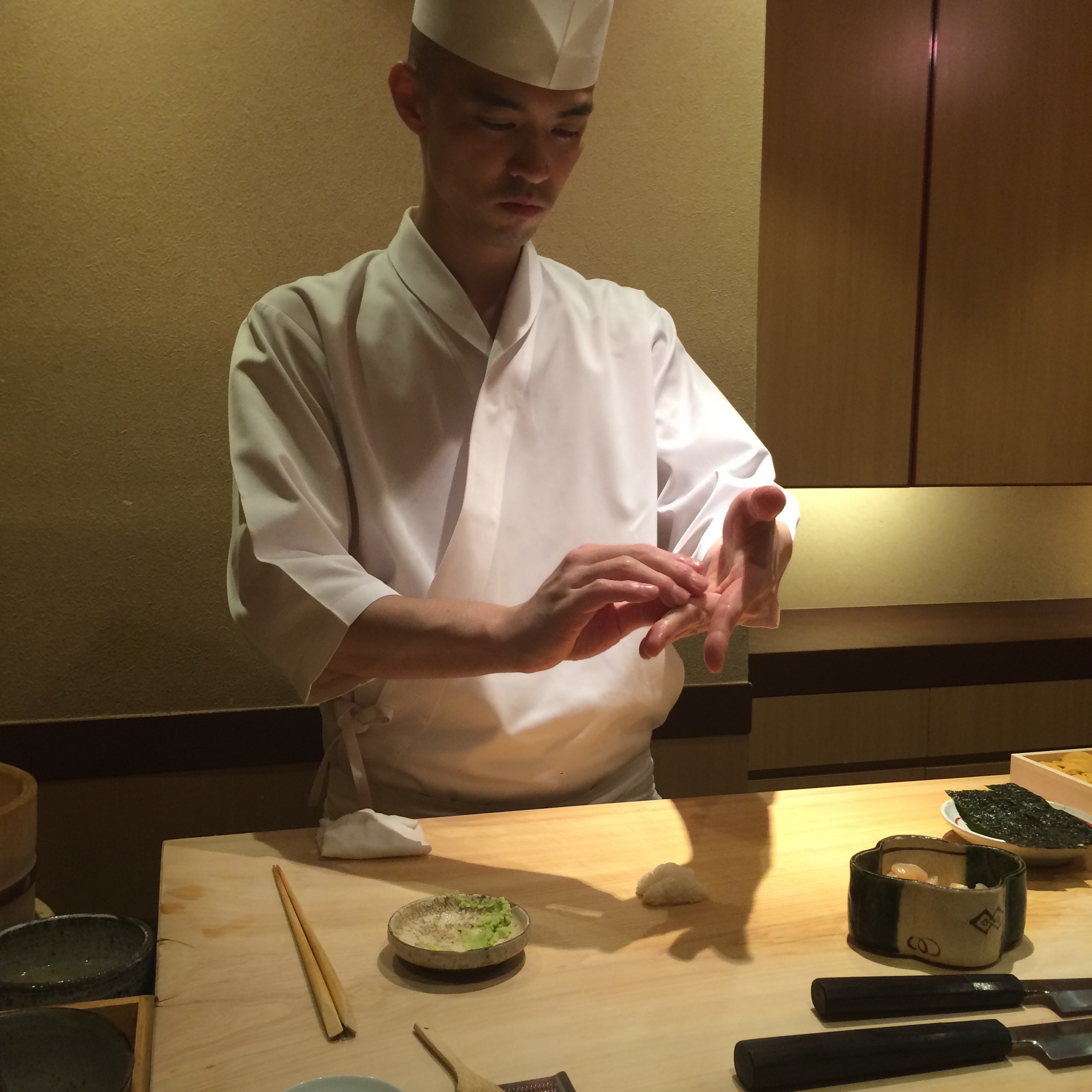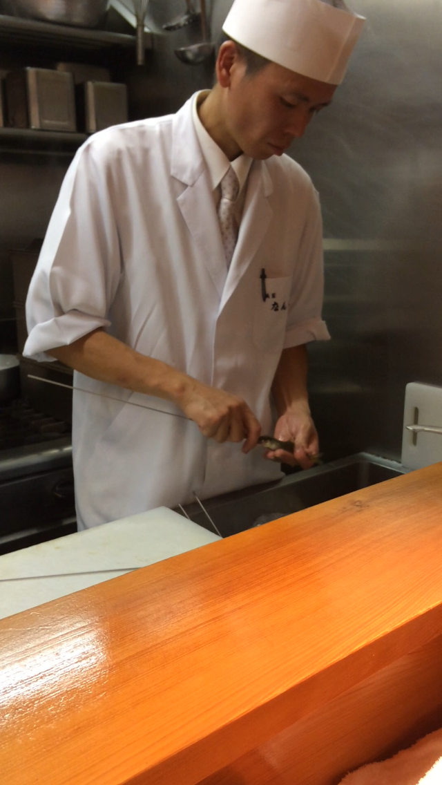 There was not a misstep in this meal. Fantastic bonito and uni, and toro that looked more like wagyu than any tuna I’ve ever had…plus I didn’t use one drop of soy sauce during the meal. It was really fun that Sushi Iwa had such a unique roster of fish – I loved trying multiple pieces, local to Japan, that I had never had before. And look at how beautifully the mackerel is cut (the silver skin cut almost like a spiral) – there was true artistry happening right in front of us, and in such a small space that it was as if we had our own private show. I loved watching as chef delicately placed 1 drop of yuzu (literally 1 drop) on a piece of fish. This meal was all about subtlety and it really worked!