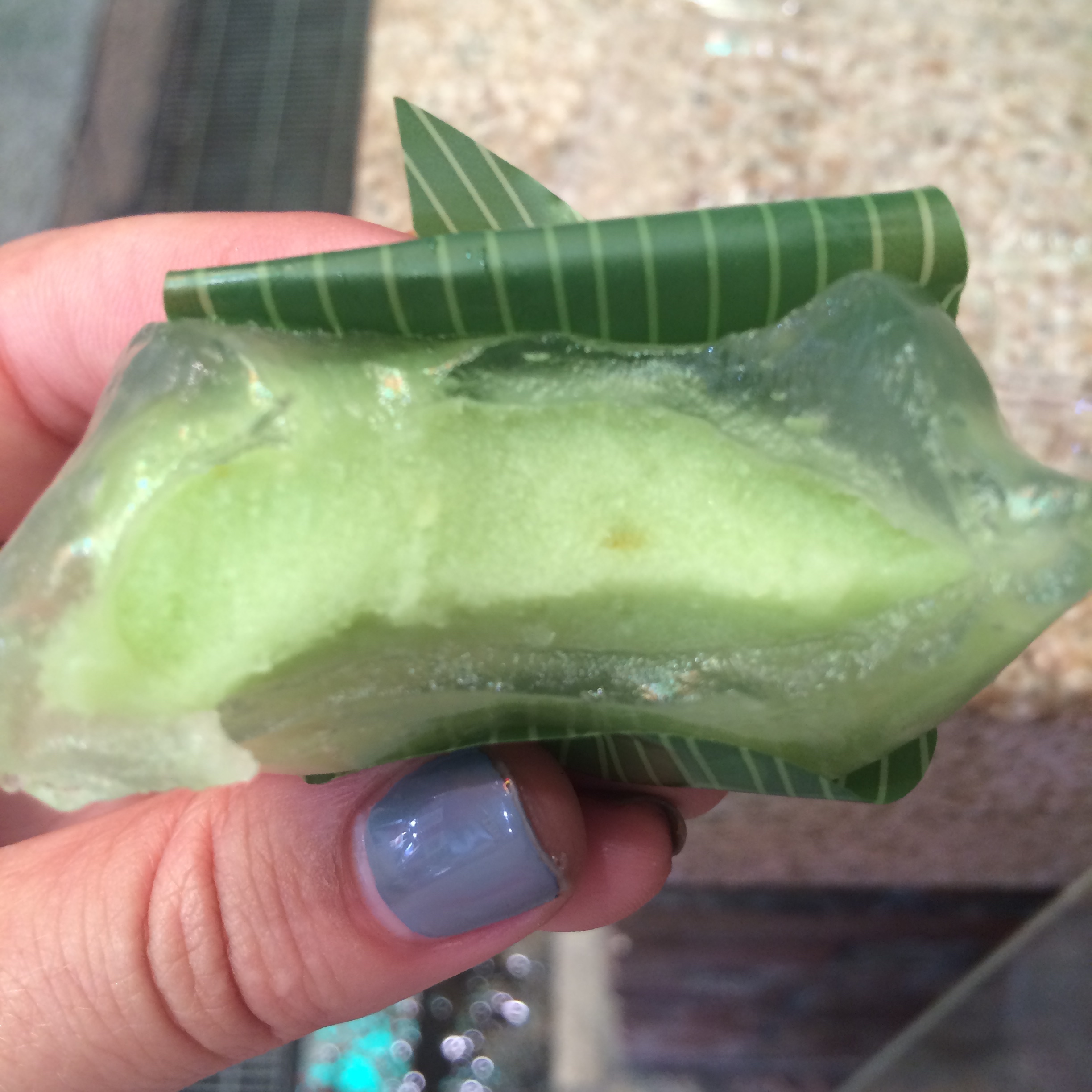 I couldn’t let this watermelon candy pass me by. Luckily the wrapper was a dead giveaway for the flavor, but what I thought might be kind of like a Now & Later ended up being a different consistency completely. It was somewhere between that of a Laffy Taffy and melty chocolate. A great bite – I’m glad I only bought one though because it could have gotten dangerous!