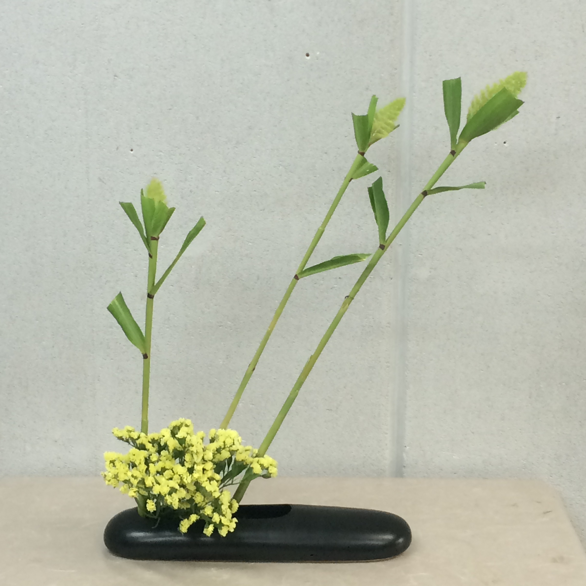 One of the things I was hoping to be able to learn about while in Japan was Ikebana, the traditional art of Japanese flower arranging. I love flower shops and arrangements, and the little I knew about ikebana intrigued me because the arrangements were so beautiful and yet so different than anything I had ever done. I found a woman who does classes, and just my luck it ended up being a private lesson. My teacher, Reika, told me that similar to Home Ec class in the States, Ikebana was once taught to girls in school, and was thought to be one of the main skills desired for an arranged marriage. Reika showed me 3 different types of ikebana arrangements, before I was to try one of them myself. Line, shape, and space are all extremely important in ikebana – most arrangement are an exercise in the beauty of minimalism. The style of my arrangement was of the slanted Moribana persuasion. 3 main stems, of different lengths, and at different angles, provide the basis for this type of arrangement in a low, shallow vase. I have seen arrangements in this style before, but never understood that there were rules that govern the final product. Upon learning said rules, I was pretty nervous, thinking I wouldn’t be able to figure it all out, but I have to admit I felt good about my final product…and my teacher did say I have “natural ability”…I guess I can always fall back on these beginner’s skills should I need them :). What do you think, not too bad, right?!
