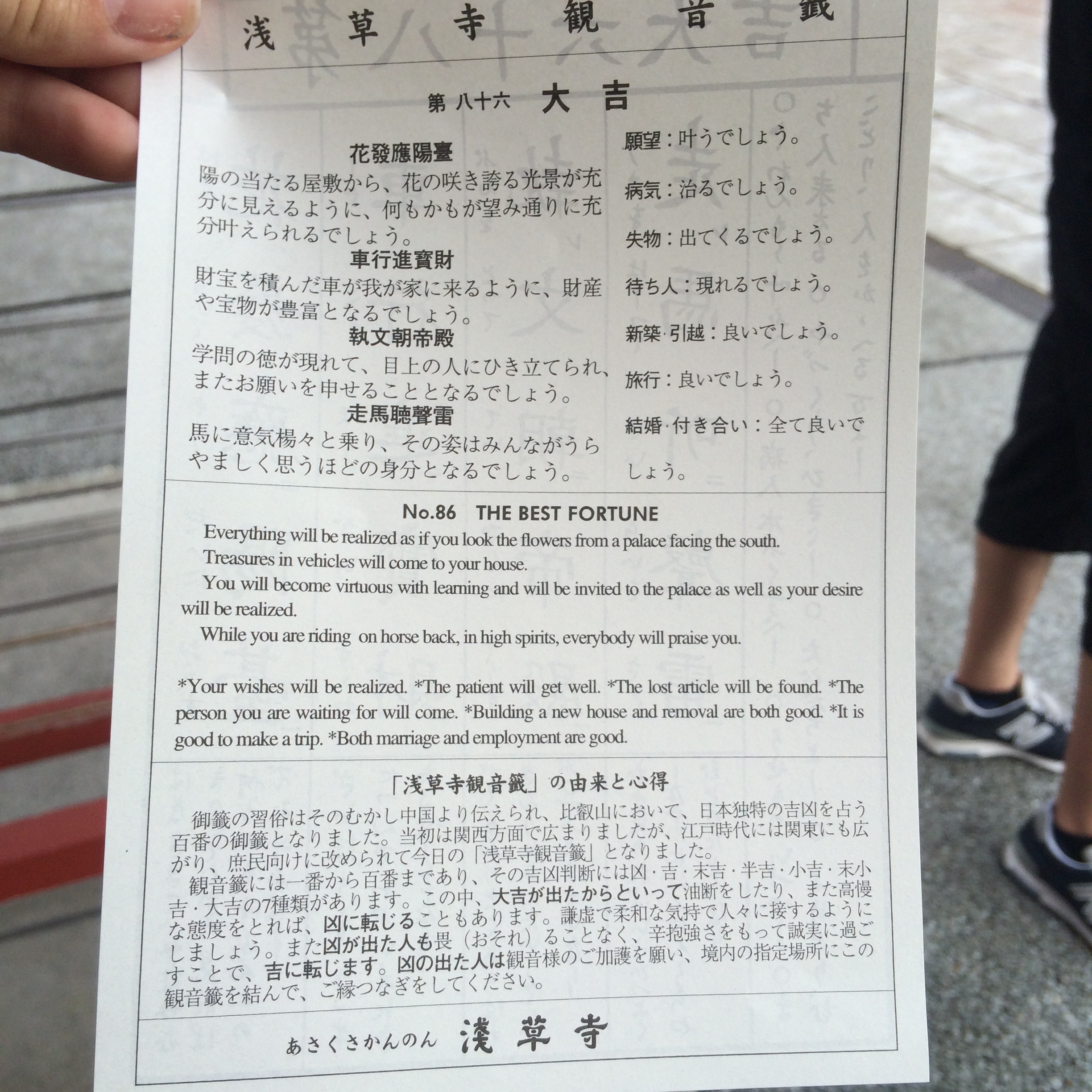 In addition to all the fun typical Japanese activities, there was also one major temple I wanted to visit in the city. Sensoji is the oldest and biggest temple in Tokyo. The huge lanterns at the gates that sort of serve as the entrance, are iconic throughout Japan. I paid 100 yen (80 cents usd) to visit an o-mikuji (random fortune) stall where I consulted an oracle in the form of a metal container. You shake the metal container to free a stick labeled with a number that corresponds to a drawer with a fortune in it. My fortune was titled ‘The Best Fortune,’ what a relief! Apparently some of them are actually ‘curses’ so I was happy to get a fortune, let alone one of the best caliber. My fortunes in Japan have been very positive – I’m feeling good about the future!