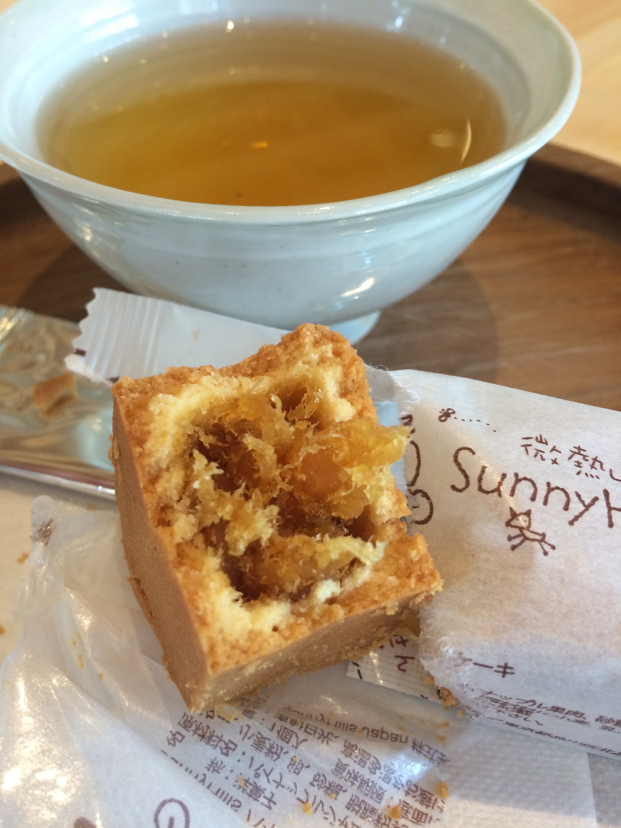 One afternoon we walked by this crazy looking wooden building exterior and decided we had to find out what was inside. It turns out this was a pineapple company, and the wooden exterior we guessed was meant to mimic that of a pineapple. We were brought upstairs for a free sample and this is what we found – tea and a prepackaged little cake. I wasn’t expecting much from this, but it turned out that it was a buttery little cake stuffed with stewed pineapple. The filling tasted like this dried baby pineapple that I love from Trader Joes. These cakes are exclusive to Japan…and they’re the perfect size for a midday treat.