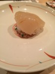 Next a trio of appetizers – Tuna with crispy onion; squid noodles with an egg, squid tentacle and some sort of braised chicken; lobster dumpling in a lobster and fennel broth. The squid was really different and really good! And the lobster and fennel was a great combination.