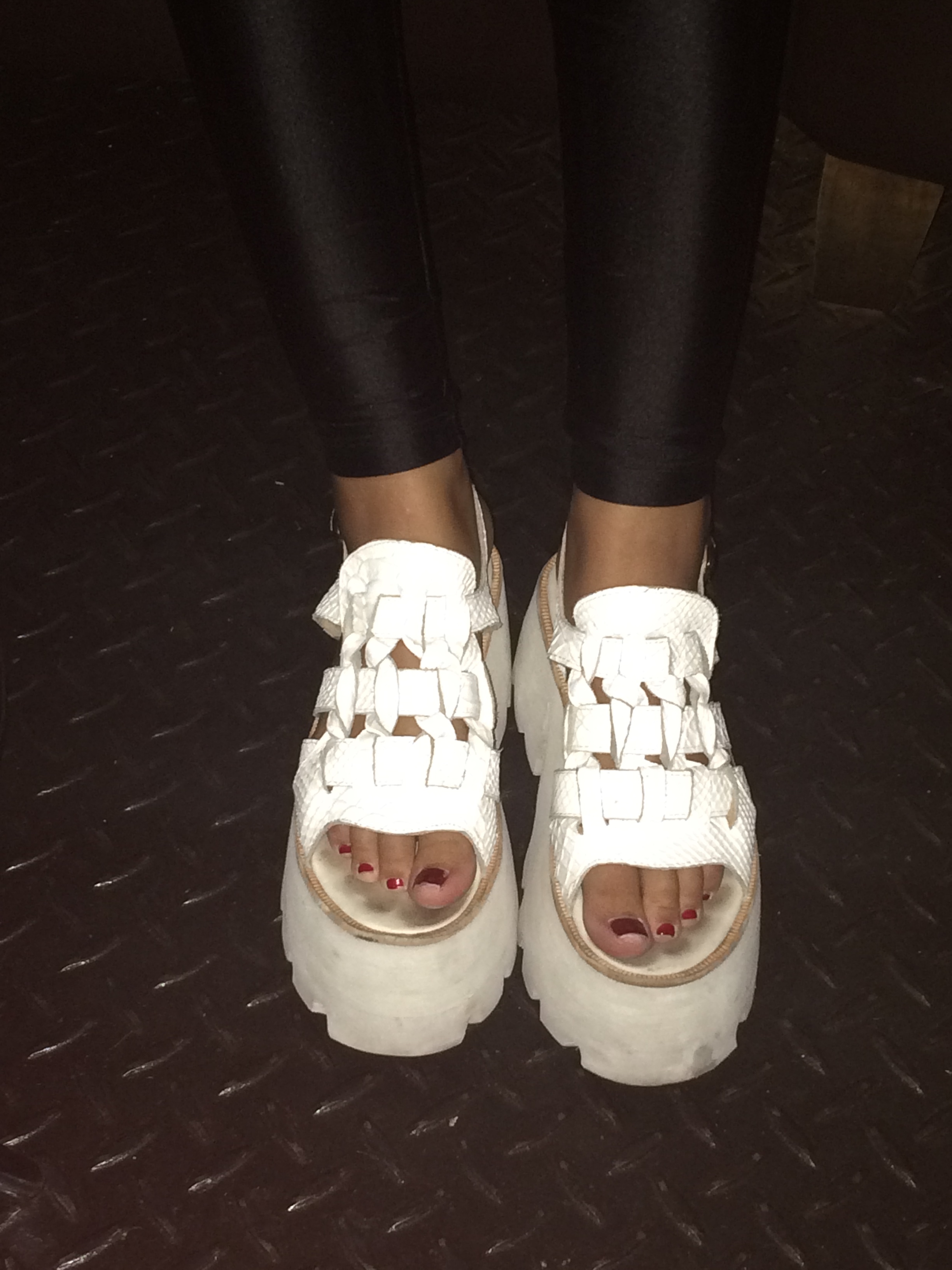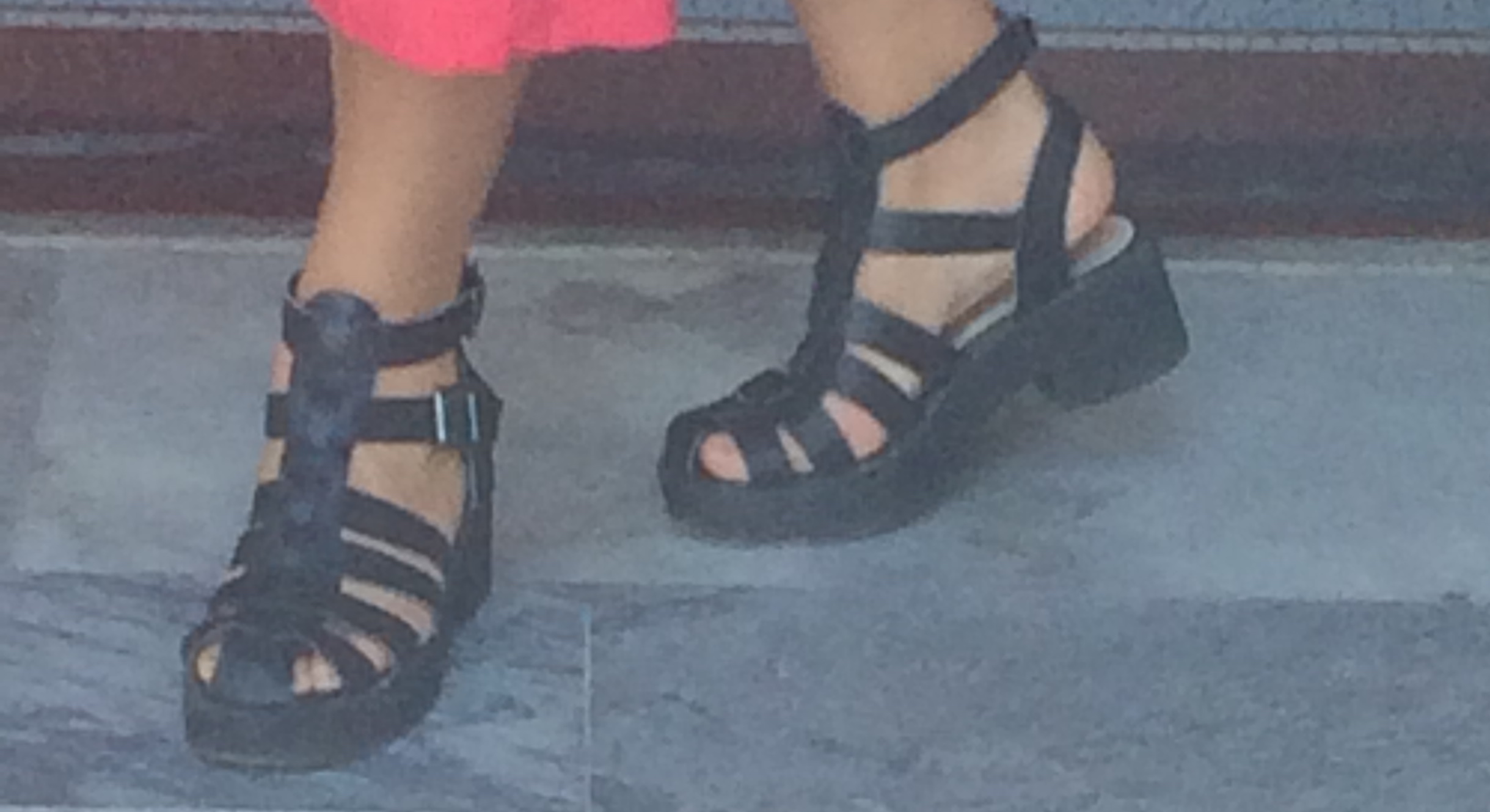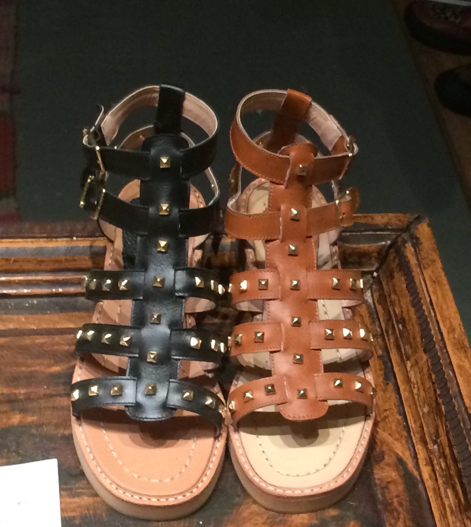 1)Platform sandals of all shapes, sizes and colors.  These thick leather strappy ones on top are most prevalent though. I’ve vowed (to myself) to try on a pair before I leave.