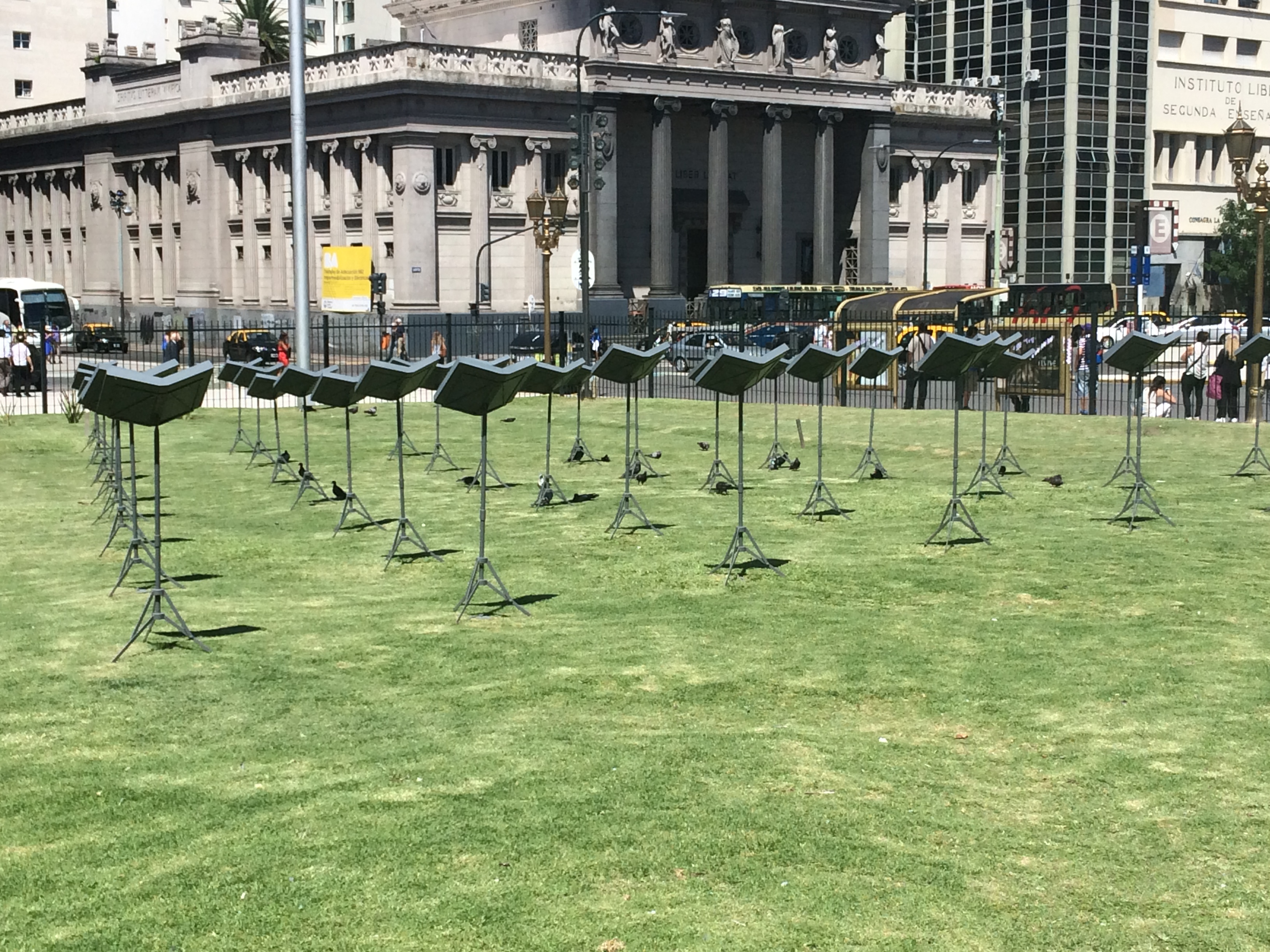 I saw this cool art installation just steps from the Teatro Colon (Opera House). It’s a triangular arrangement of music stands, some of which seem to be filled with dirt. I still haven’t been able to figure out who did it, what it might be about, or how long it’s been there, but I’m very curious!!