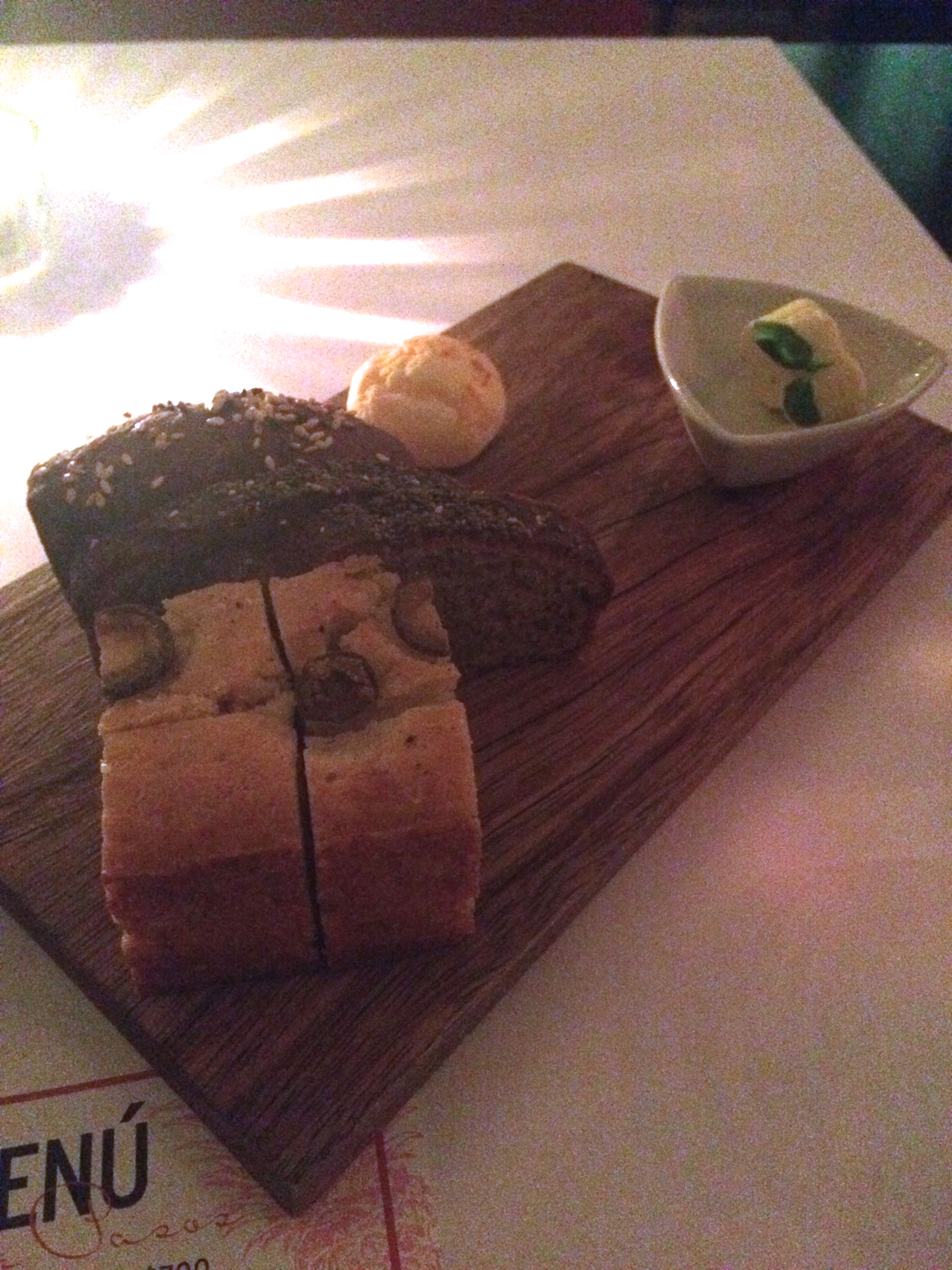 Bread board – banana bread, chipa (delicious! made with yucca flour and cheese), coconut bread, focaccia and cacao bread + lime and pepper flavored butter